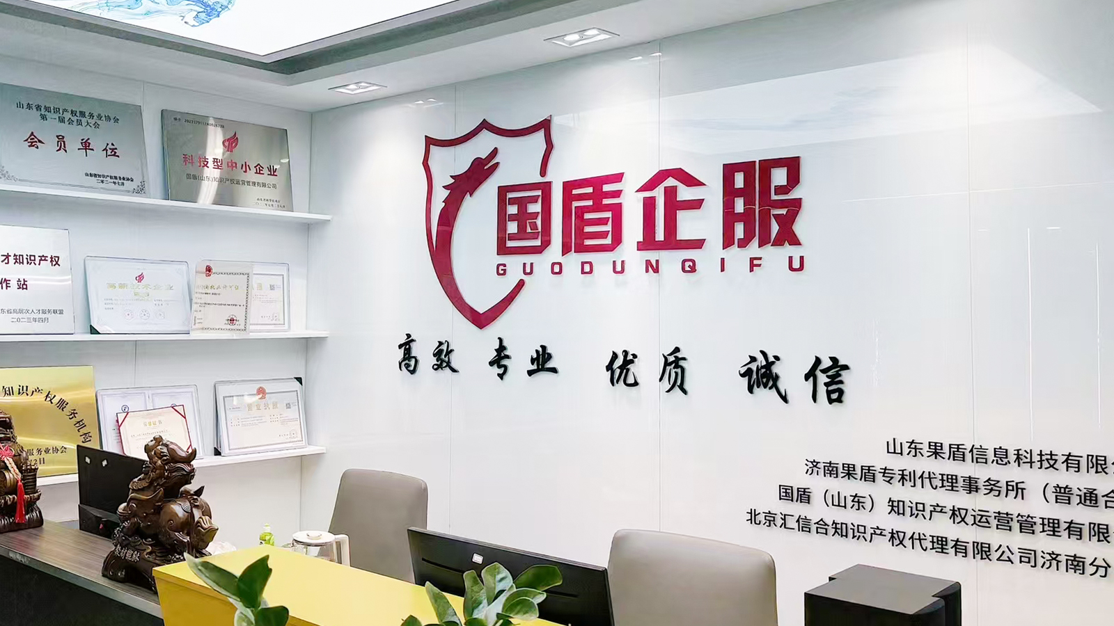 国盾(山东)知识产权运营管理有限公司(以下简称:国盾企服)成立于2011年,是山东省较早成立的大型知识产权服务机构,同时也是一家集专利信息分析、导航服务、技术转移、知识产权管理和科技项目申报于一体的综合性服务平台。