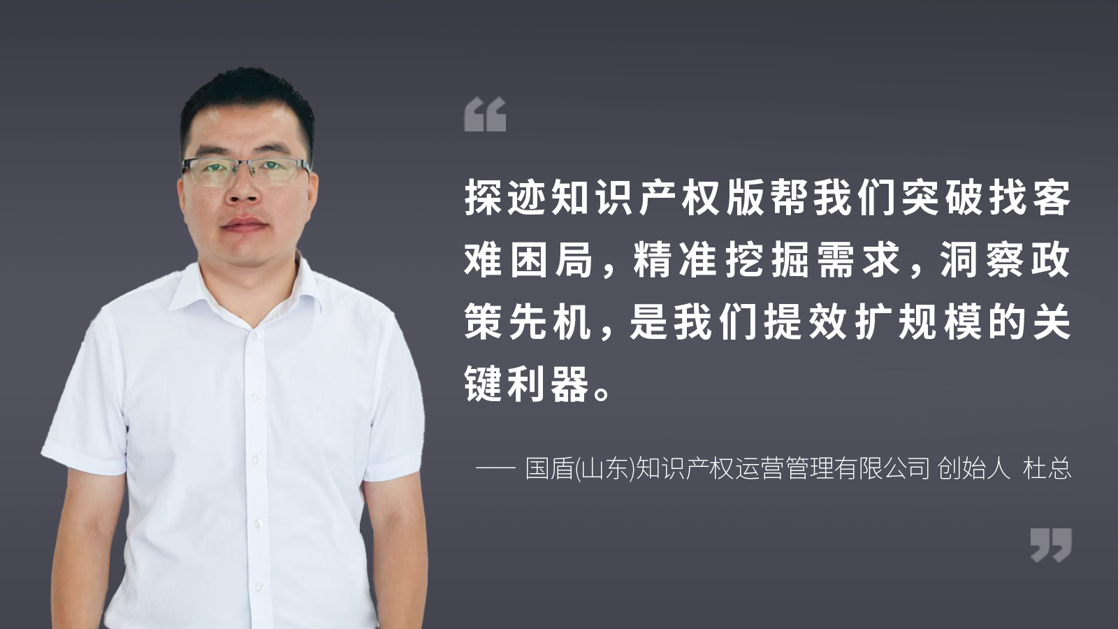 然而,创业路上总有风浪。在外卖事业风生水起之际,杜总做出了一个令旁人意想不到的决定,在2022年底,他选择更具专业壁垒的知识产权行业,创立国盾企服。杜总看准的是企业全生命周期服务的广阔前景。